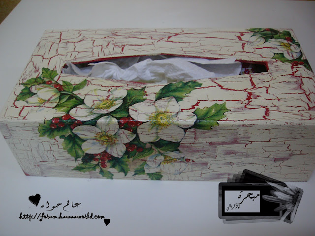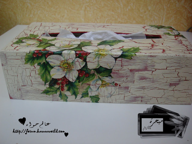 كمان عملت علبة مناديل لصالتي وعملت تعليقة اعلق فيها مناشف المطبخ