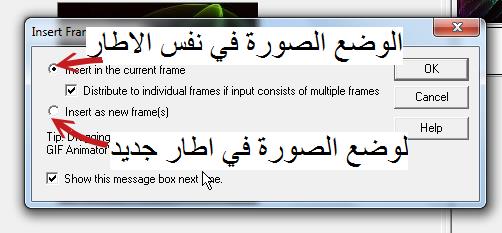 ولتغير زمن ظهور الصورة بالضغط على الframe تظهر هذه اللوحة وتغيري القيمة الموجوده امام delay وعندك من ثانيه الى 100 ثانيه وبتختاري المناسب