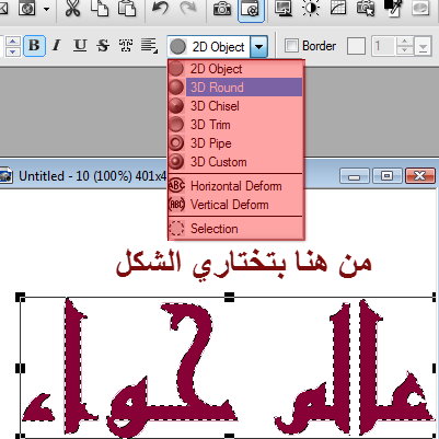وما عليكي الا ان تجربي الاشكال كما تحبين ولكن بعضها يجب عليك ان تفعلي 3d