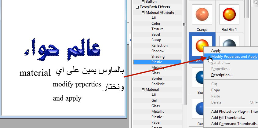 اولاً: اما ان تضغطي بالماوس يمين على اي material وتختاري Modify Properties ana Apply