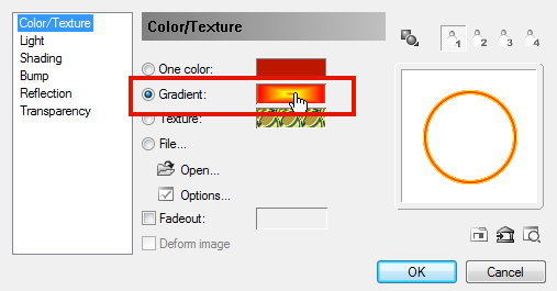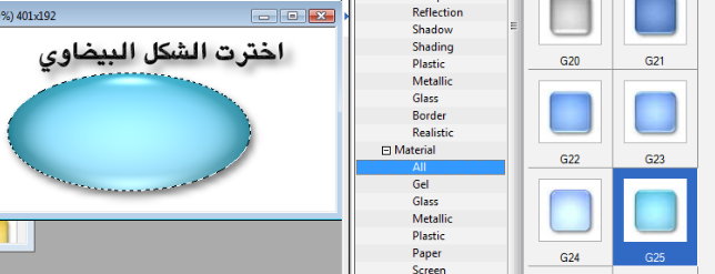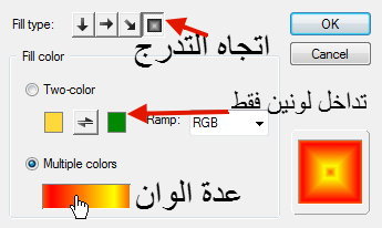 وهنا نختار تداخل او تدرج لونين وبالضغط على مستطيل الالوان