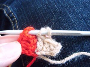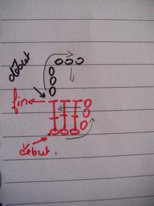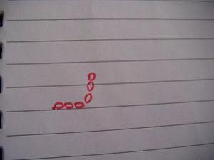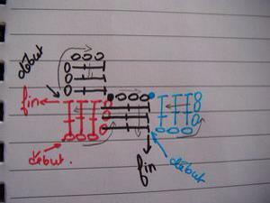 بعد أخذ لفة على الأبرة نسحب سحبة واحدة الغرزتين كما في الصورة ...ولاحظي السهمين في الصورة ...