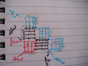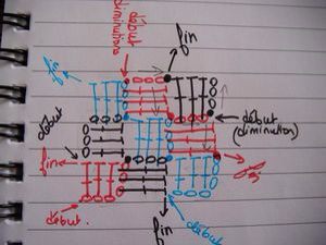 طبعا هتغيري اللون وزي ما انتي شايفه سطر الشغل فيه بالطول وسطر الشغل فيه بالعرض وفي تناغم بالشغل دايما القفلات بمنزلقه بتصير بالسلسله رقم سته من كل بداية ديالوج
