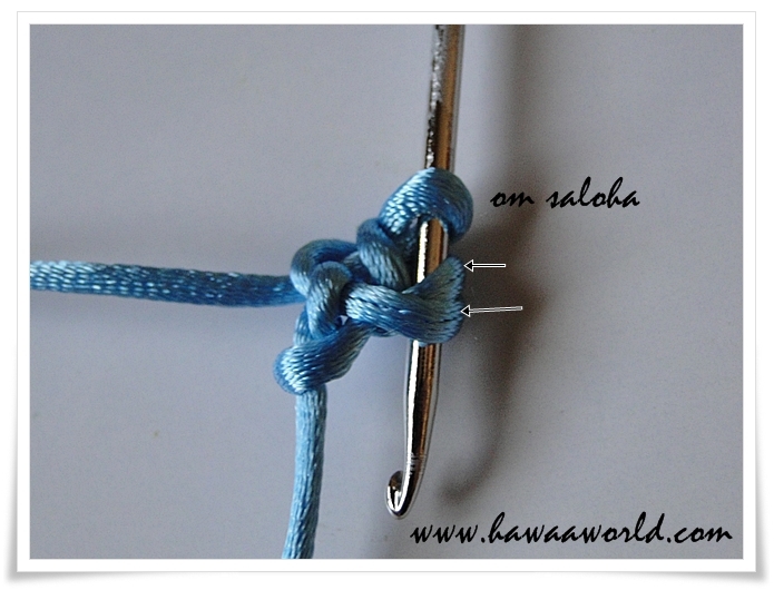 وهنا غاليتي ...بإذن الله سيبدأ العمل أسهل وأجمل ...عندنا عروتين على الأبرة ...ولاحظي الأسهم على الصورة وهي مكان إدخال الأبرة من جديد بإذن الله ..