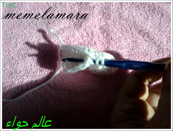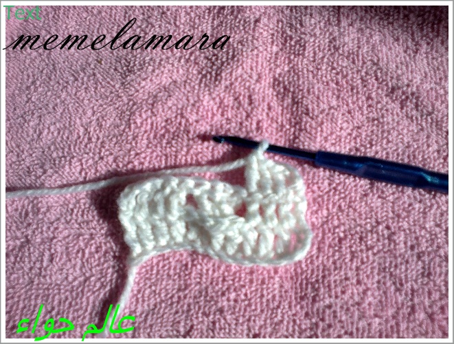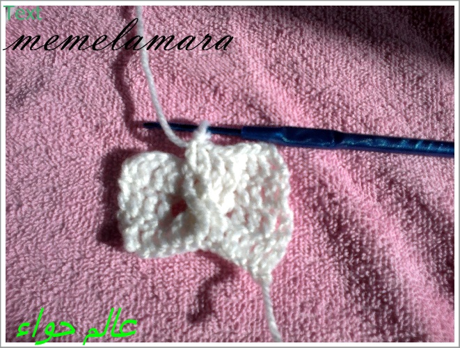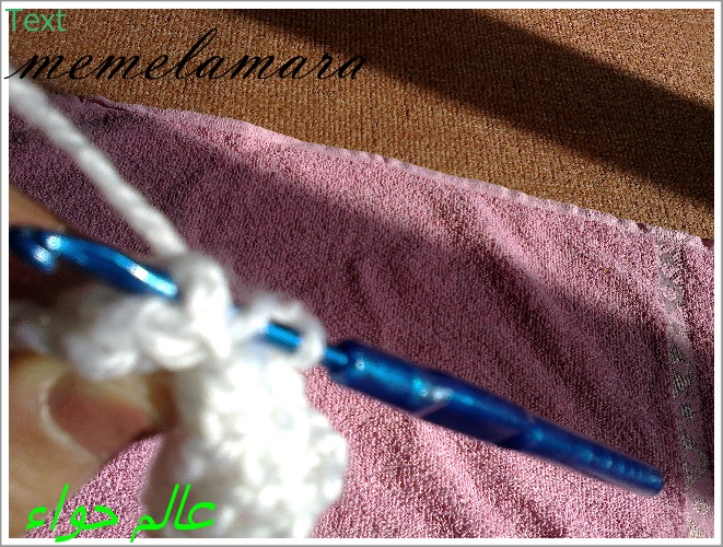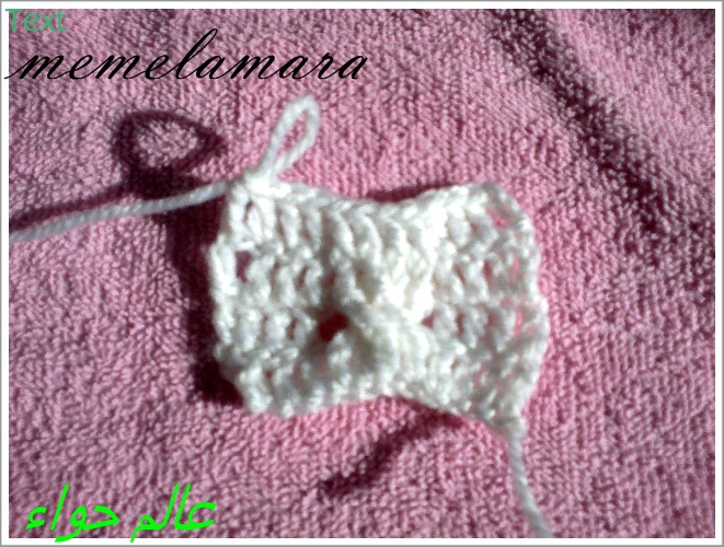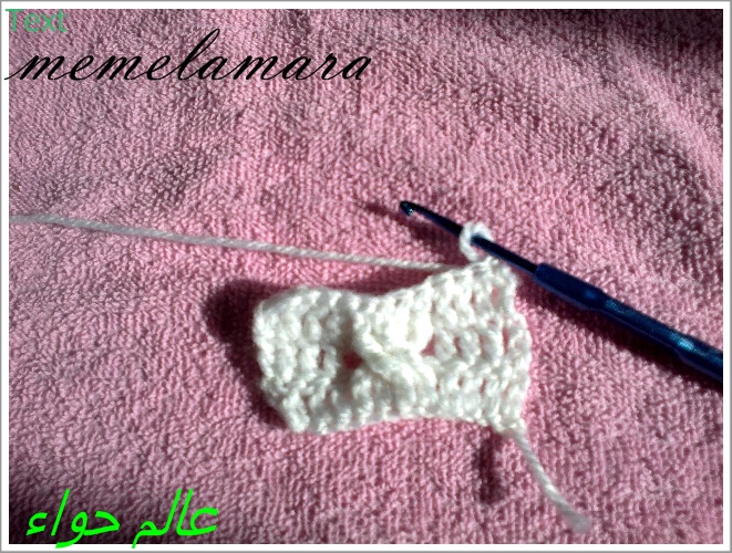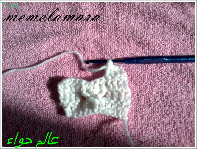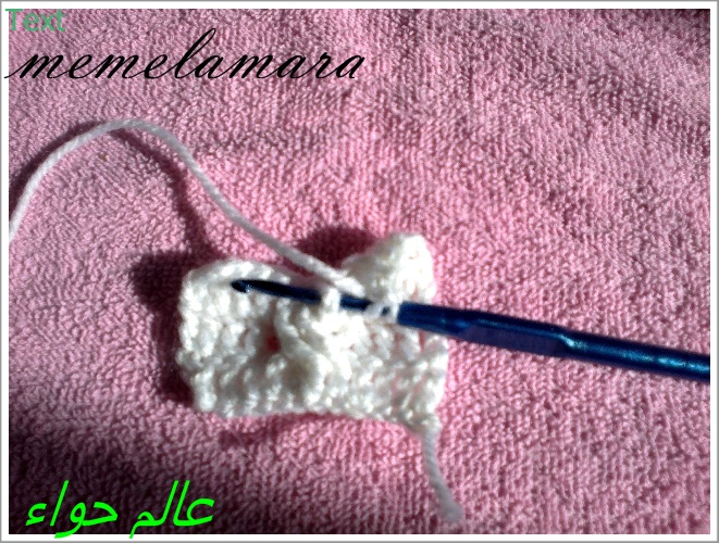 نلف بالشغل علي الوجه الأصلي ونعمل اربعه اعمده بلفه علي الأربع غرز من السطر السابق