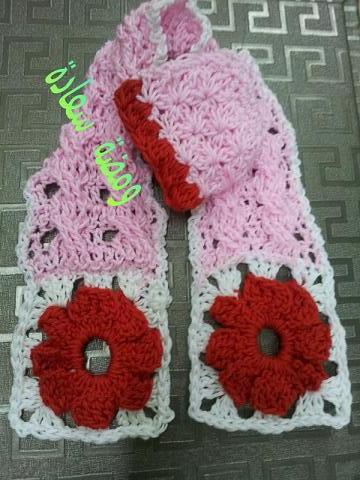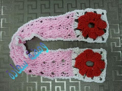 سكارف بغرزة االضفيرة والوردة المبرومةسكارف بغرزة االضفيرة والوردة المبرومة