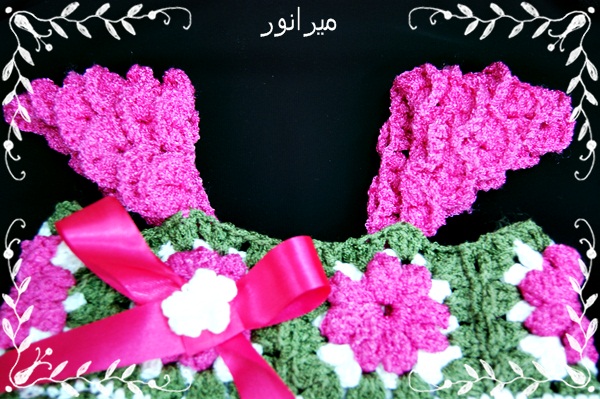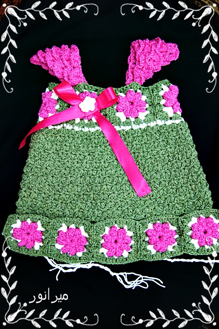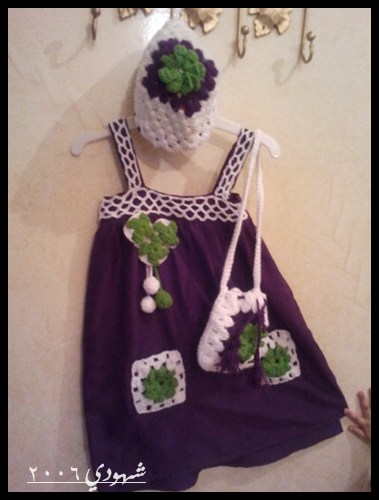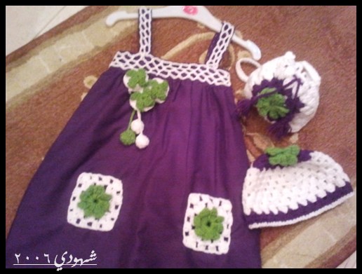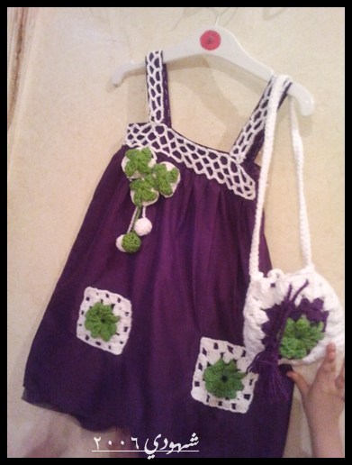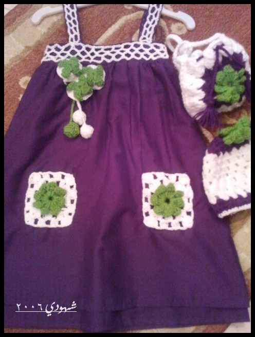 بعدين فكرت انو اكمله طقم كامل فعملت فستان بسيط بغرزه الورده المبرومه