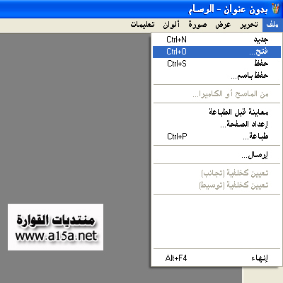 بعد فتح البرنامج تقوم باستدعاء الصورة المراد تصغيرها عن طريق ( ملف -- > فتح ) كالتالي