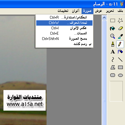 بعد اختيار الصورة المطلوبة اذهب إلى ( صورة ---> تمدد / انحراف ) كالتالي