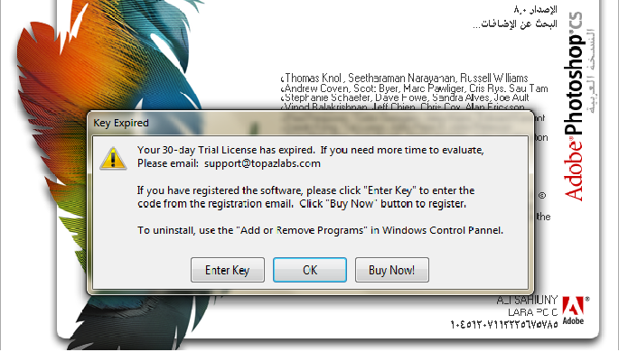 بعد مانتهي من التثبيت وافتح الفتوشوب يطلع لي كذا