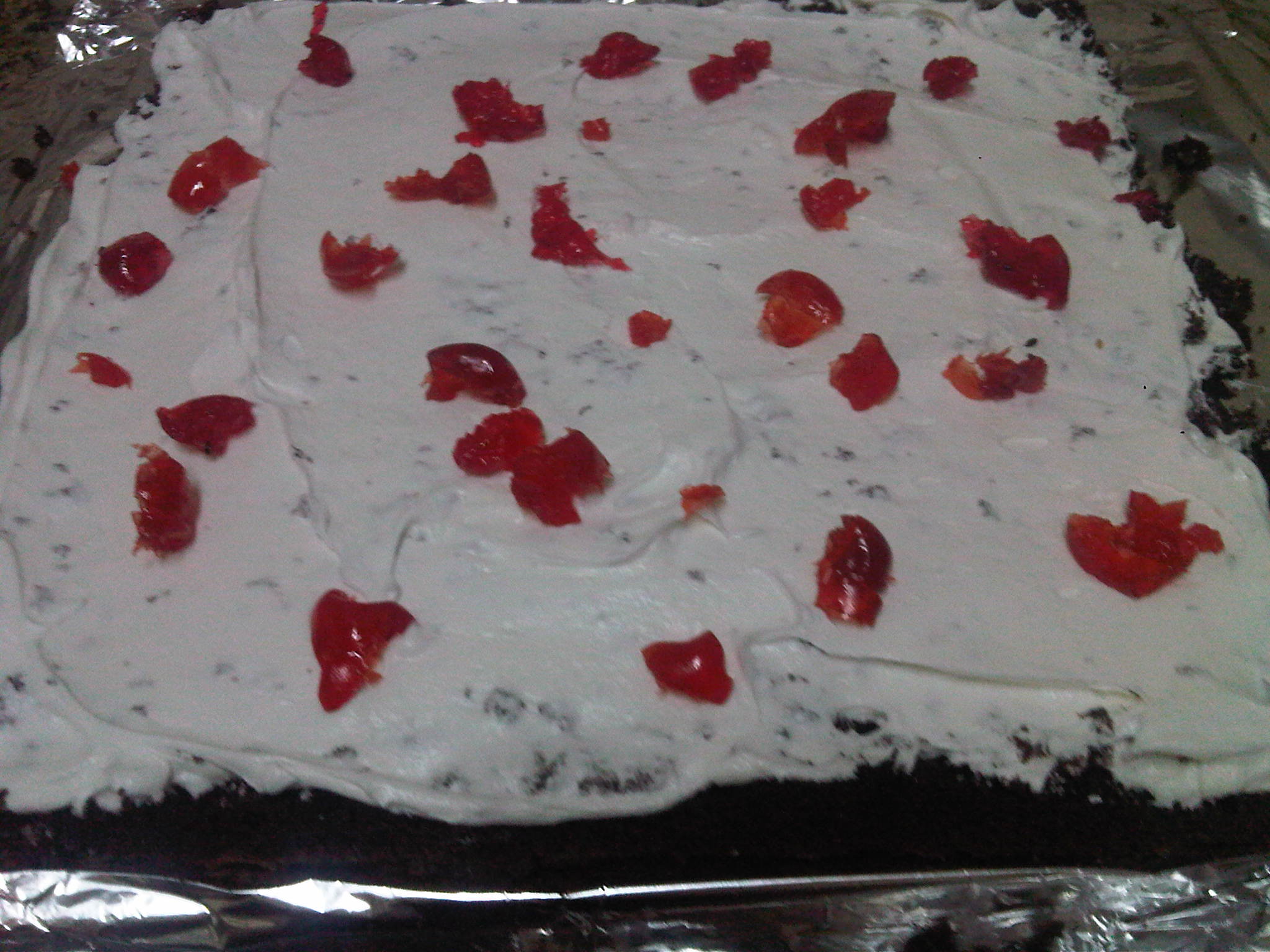 بعد لما ارش الشيكولاتة اعمل بالقمع وردات متفرقة واحط عليها كريز