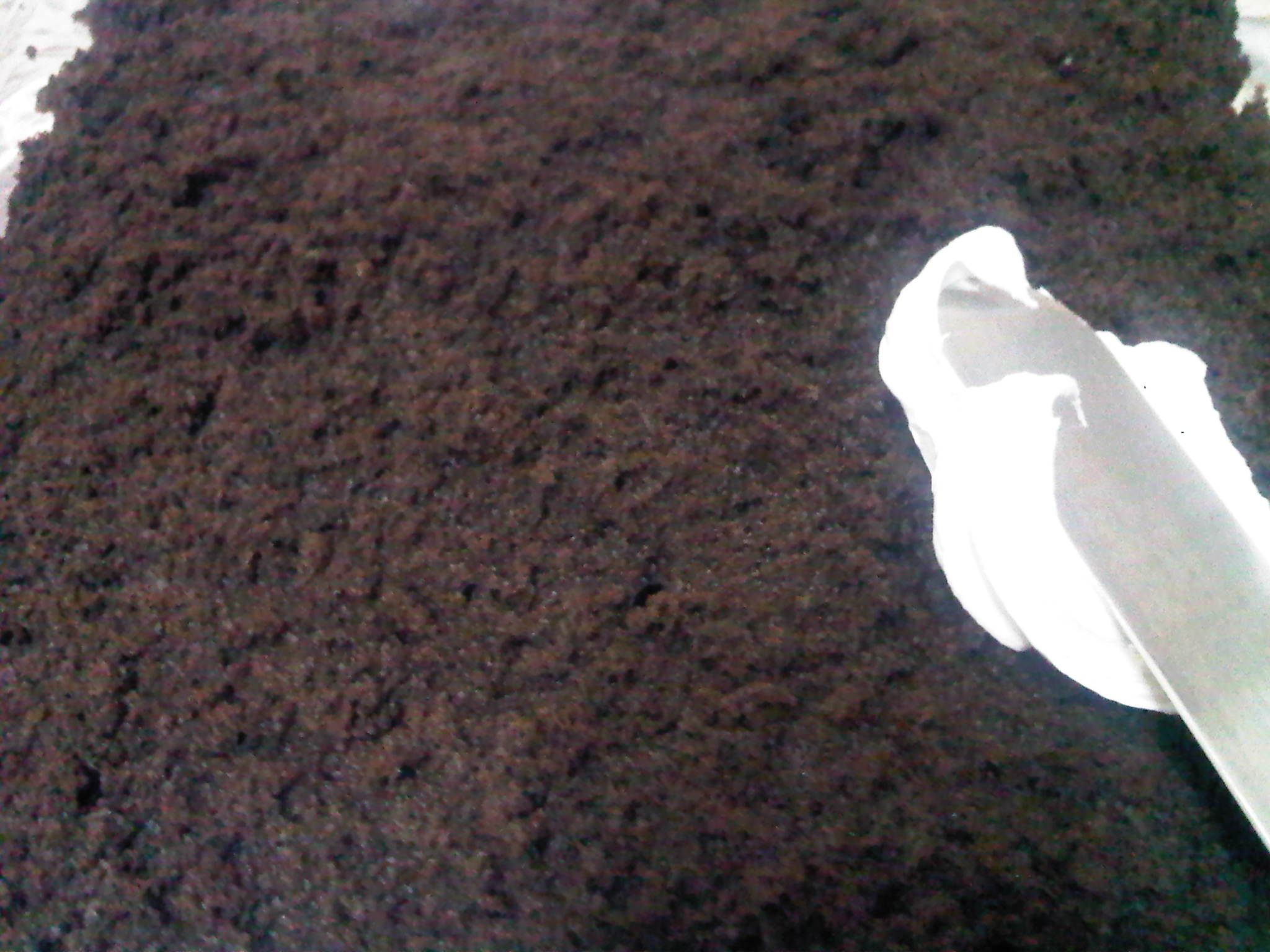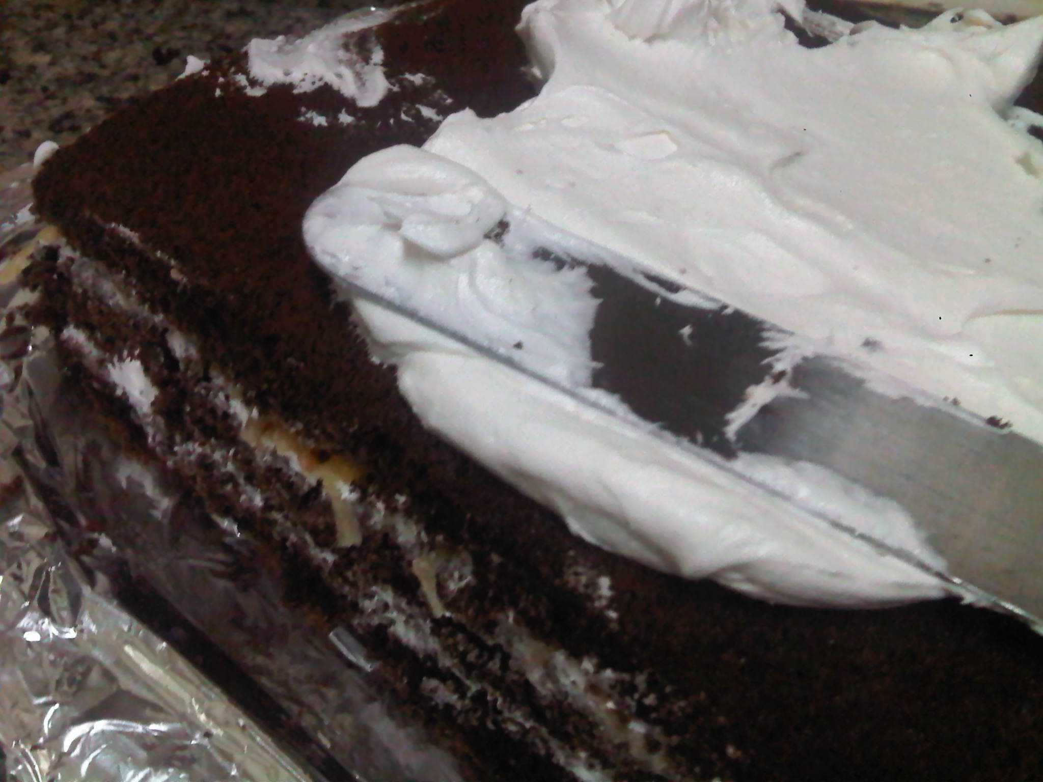 حنعمل الكيك الاسفنجي بس حنستبدل 2ملعقة دقيق ب2ملعقة كاكاو ونمشي بنفس الخطوات وبعد لما تبرد اقلبها علي وشها واقطعها 3 طبقات