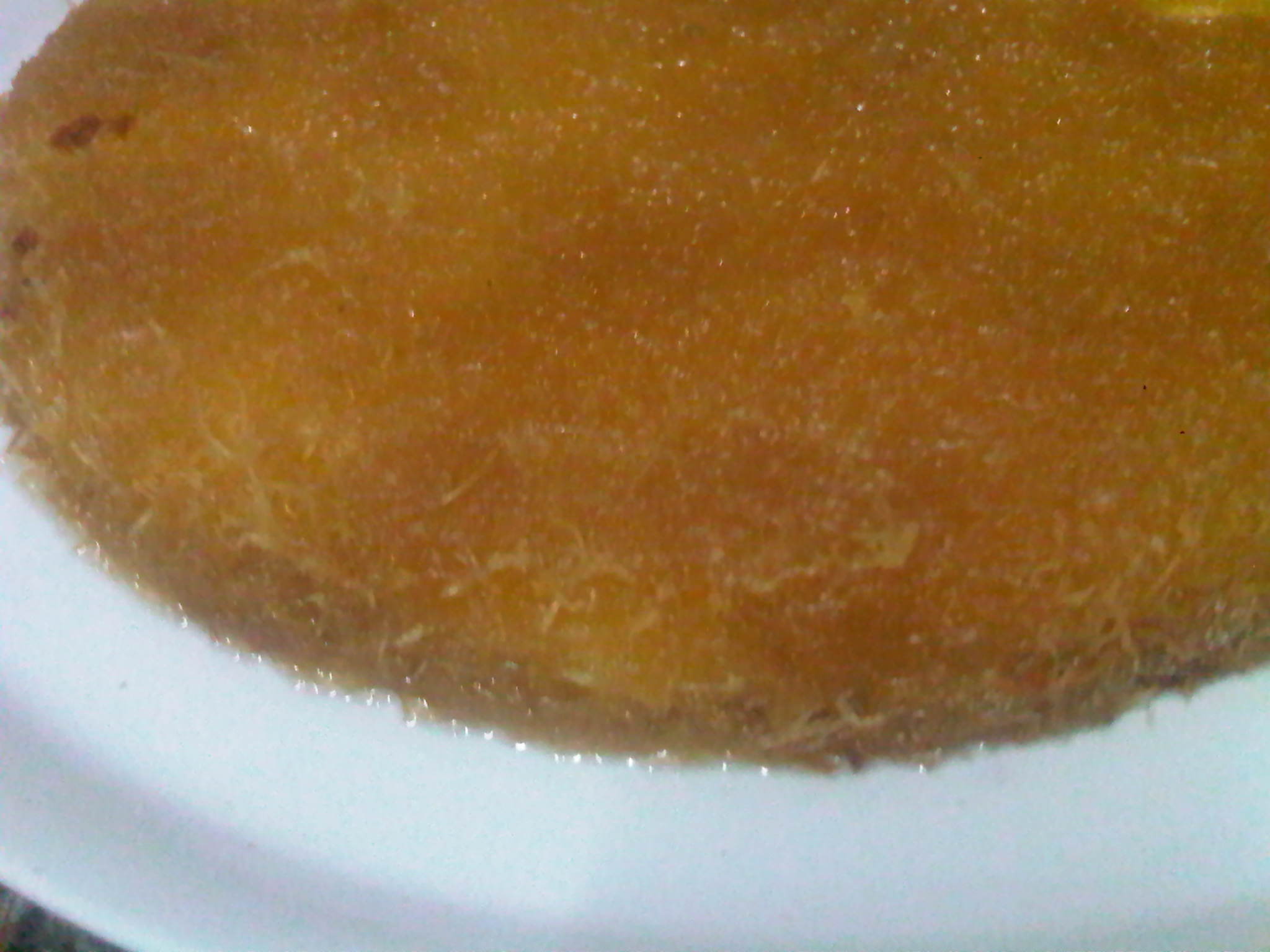 واسقيها بعد طلوعها من الفرن بدقيقتين انقلها لطبق التقديم علي ظهرها لانه حيكون متساوي عن الوش