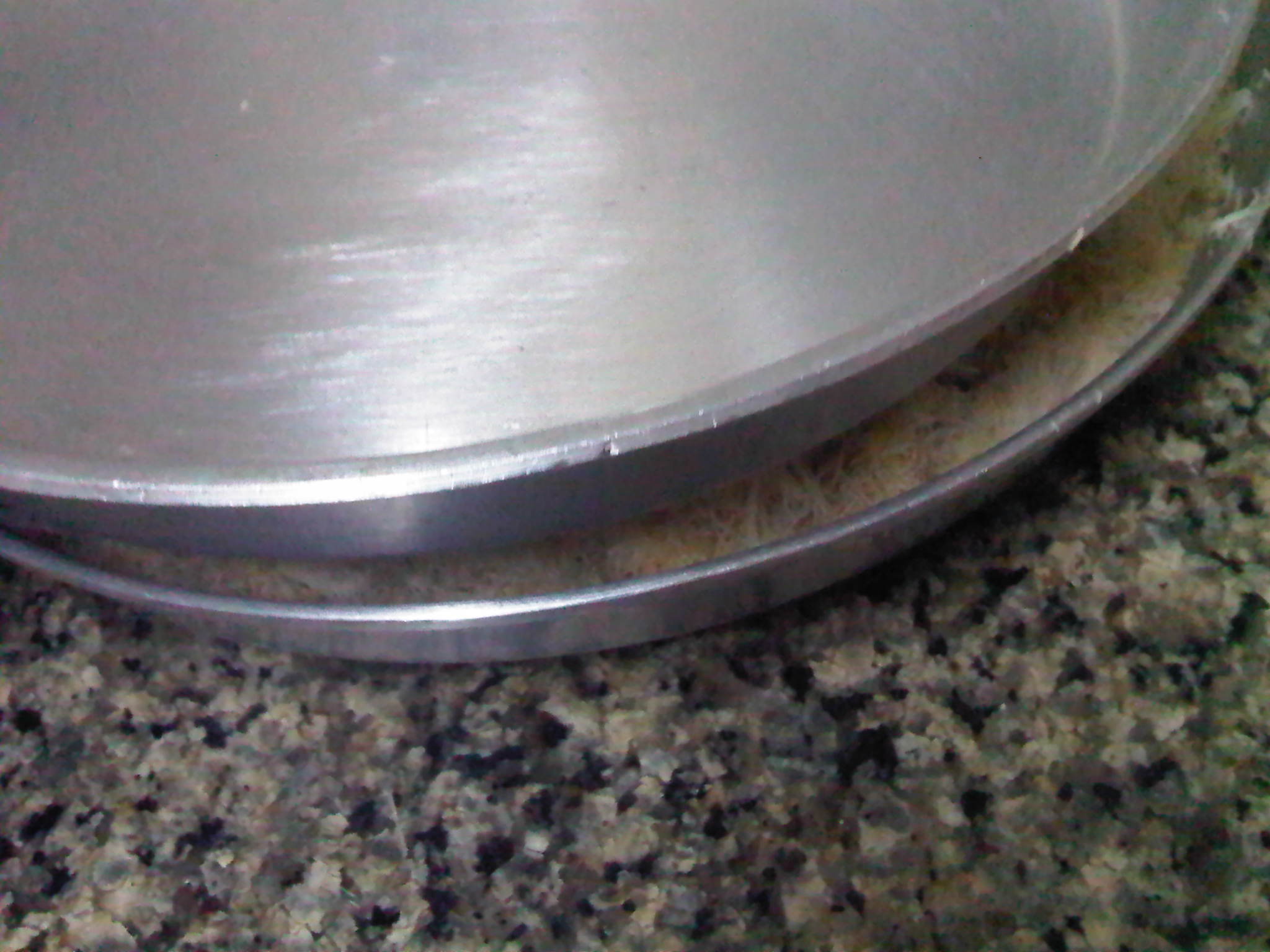 ونحط عليها باقي الكنافة ونوزعها بالتساوي ونضغط تاني بالصينية الصغيرة بنفس الطريقة وندخلها فرن متوسط