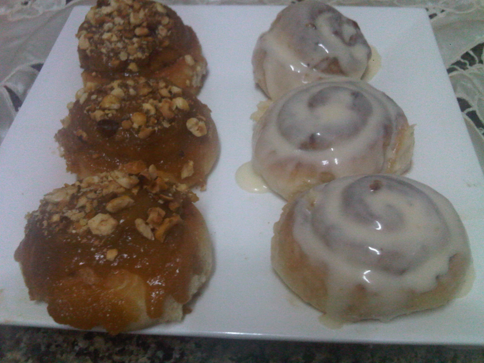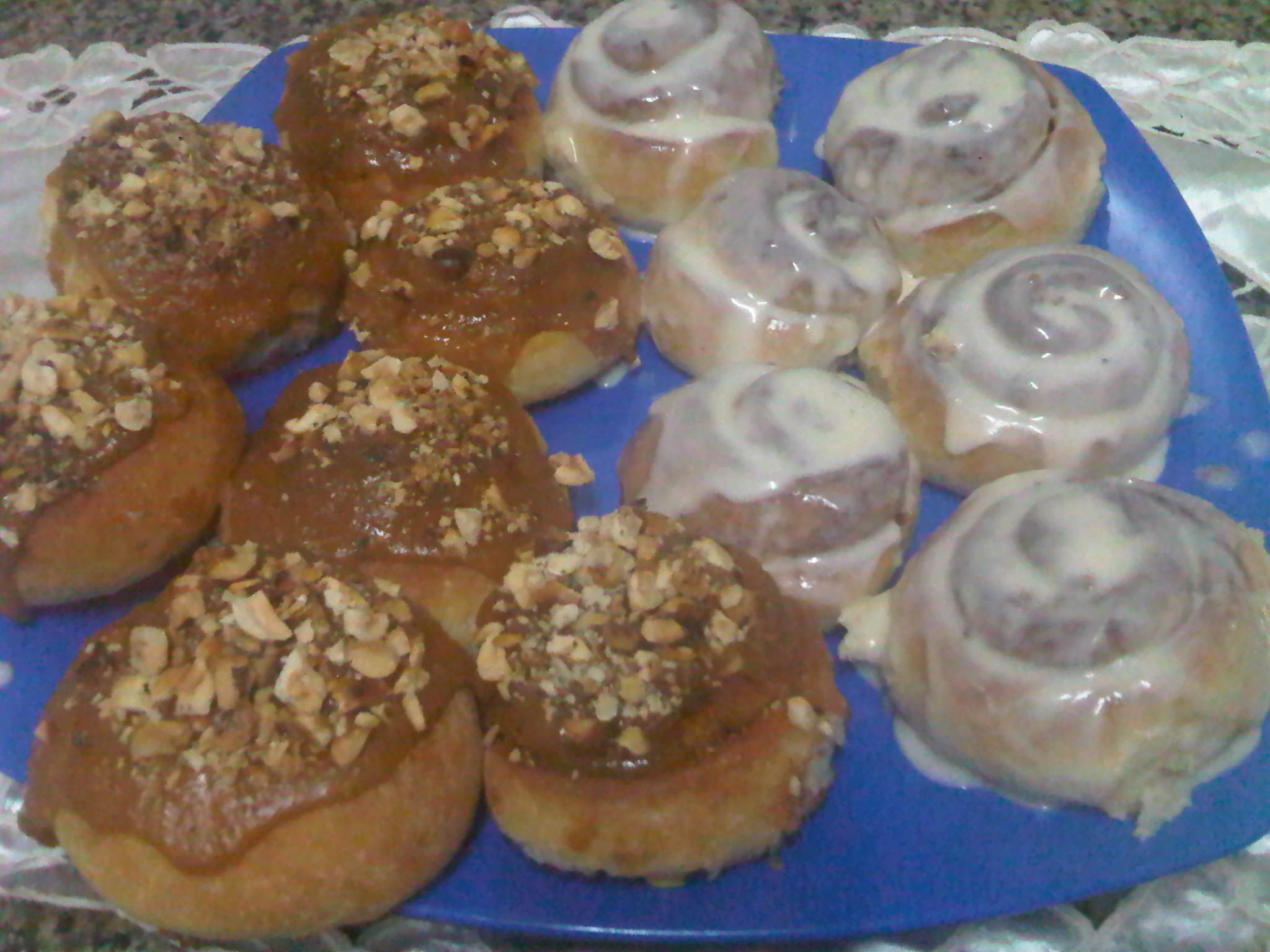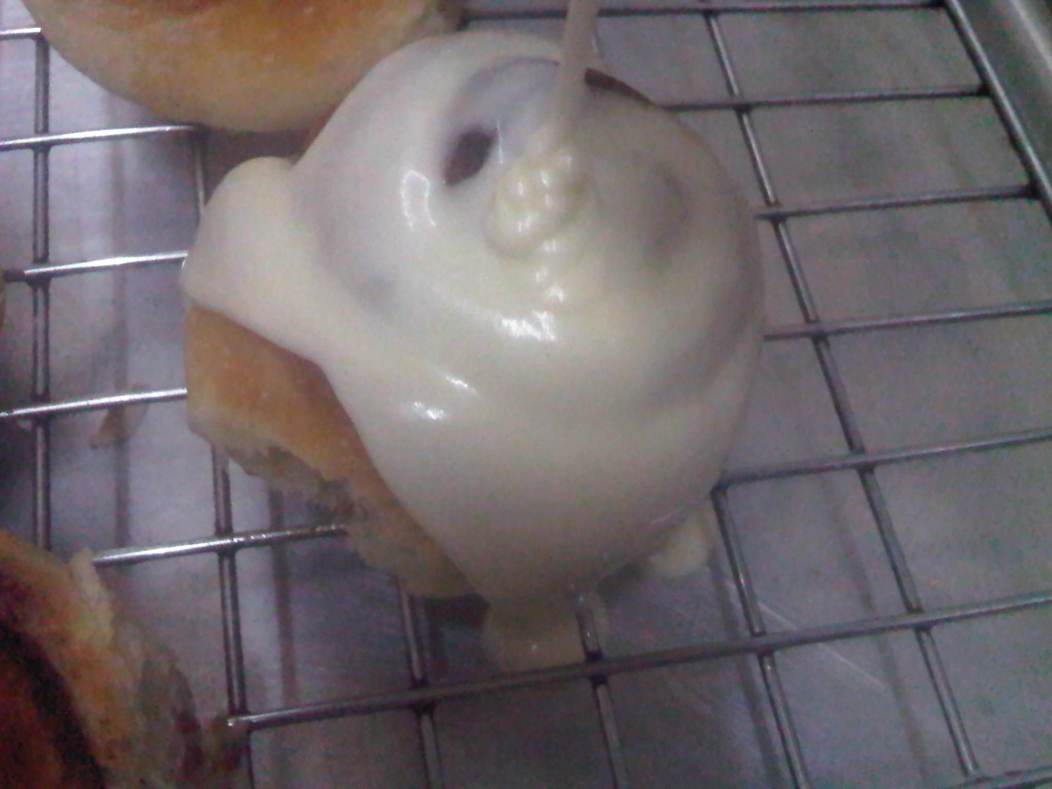اضرب بالمضرب 2 كوب سكر بودرة ومعاه حوالي نص فنجان حليب بنحط بالتدريج لحد لما احصل علي عجينة سايلة غليظة زي قوام الطحينة واجيب صينيةواحط عليها شبكة وعليها وحدات السينابون واحط عليهم الصوص