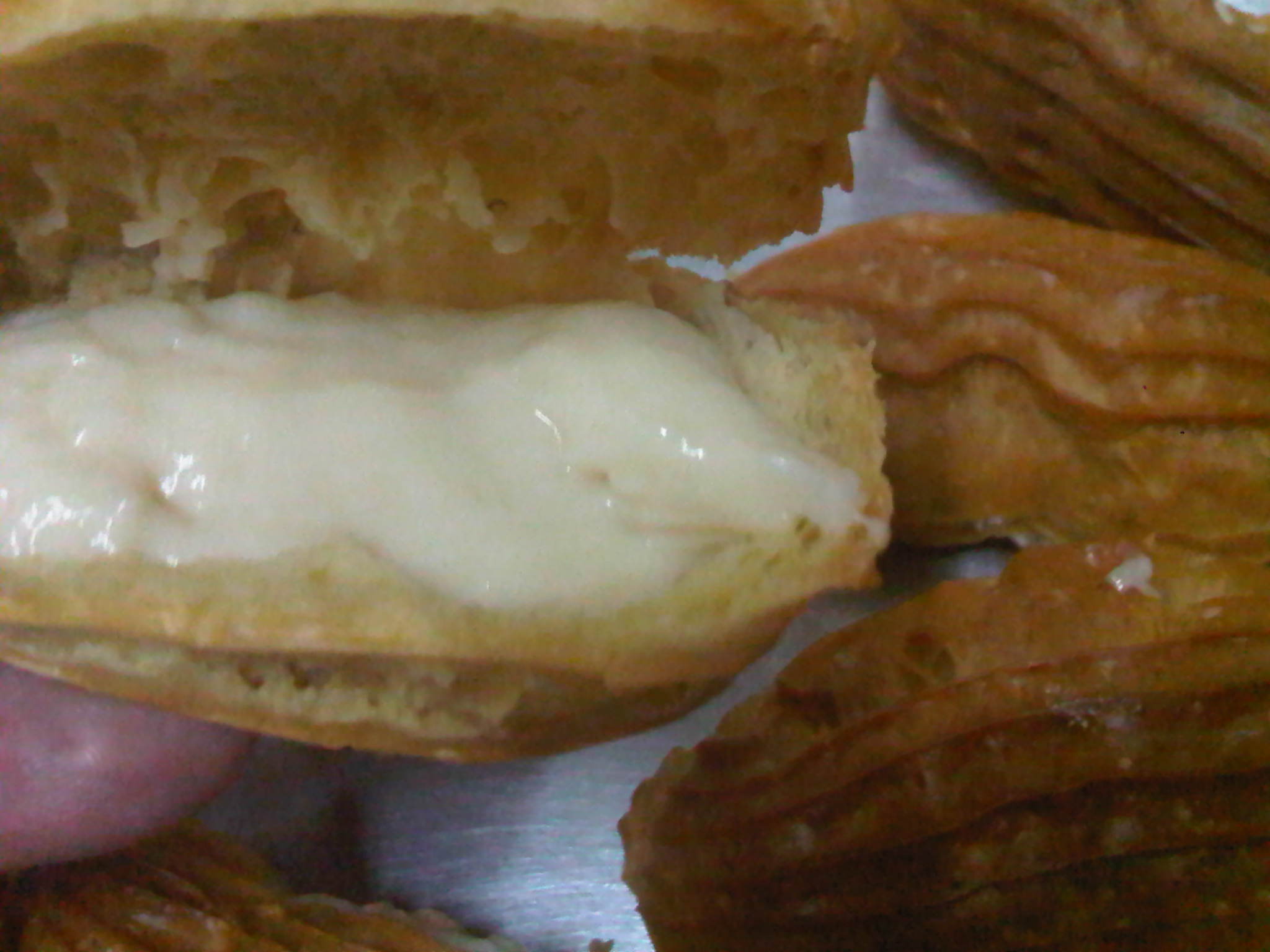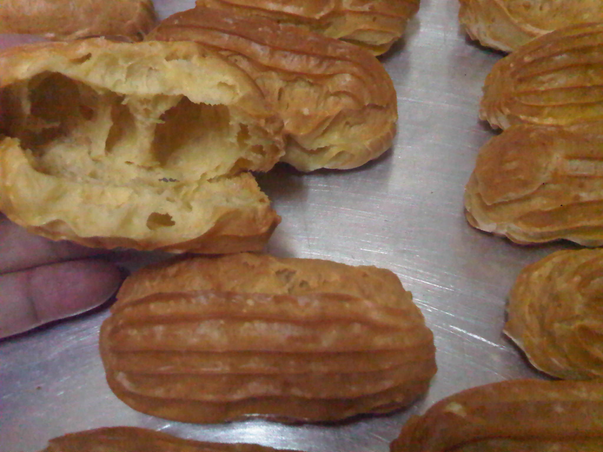 المقادير :كوب دقيق-كوب مية -بيضتين-2ملعقة سمن -فانيليا -شيكولاتة خام مخففة بالحليب بمقدار الربع -باتيستري كريم اوكريمة شيكولاتة حسب الرغبة في الحشوة-ذرة ملح