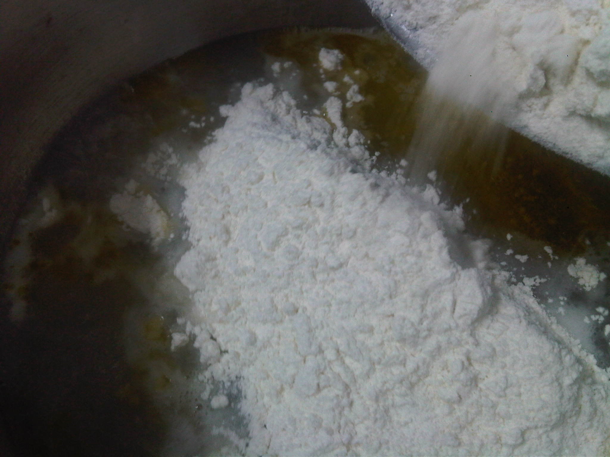 نحط المية والسمن علي النار وبمجرد غليانه اوطي واضيف الدقيق بسرعة دفعة واحدة واقلب لحد لما كله يندمج مع بعضه وتتكور العجينة ولو ناشفة اوي ممكن اضيف شوية مية صغيرين واقلب واسيبها تبرد