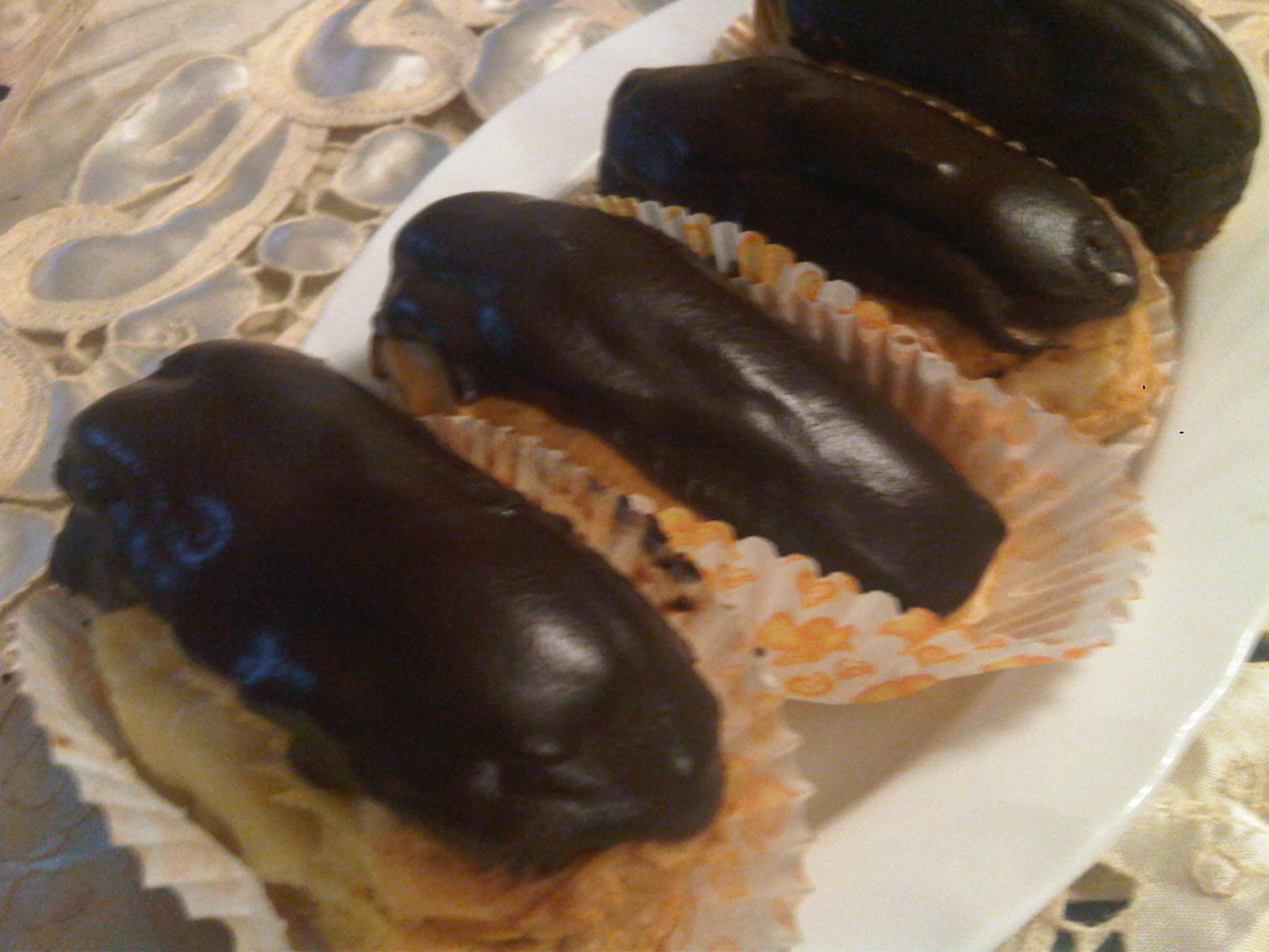 احضر صلصة الشيكولاتة اسخن ربع كوب حليب واضيف عليه كوب شيكولاتة مبشورة بعد لما يسخن قرب الغليان واقلب بسرعة وانا موطية النارلحد لما يندمجوا اطفي النار واستمر في التقليب اسيبها 5دقايق بس تخف السخونة شويه واجيب حبة الاكلير اغطس وشها وارفعا واكحت الحرف علي طبق الشيكولاتة علشان انزل الزيادة وارص في صينية واسيبهم لحد لما الشيكولاتة تبرد تماما وانقلهم طبق التقديم لاني لو مسكتها والشيكولاتة لسة طرية حبوظ منظرها