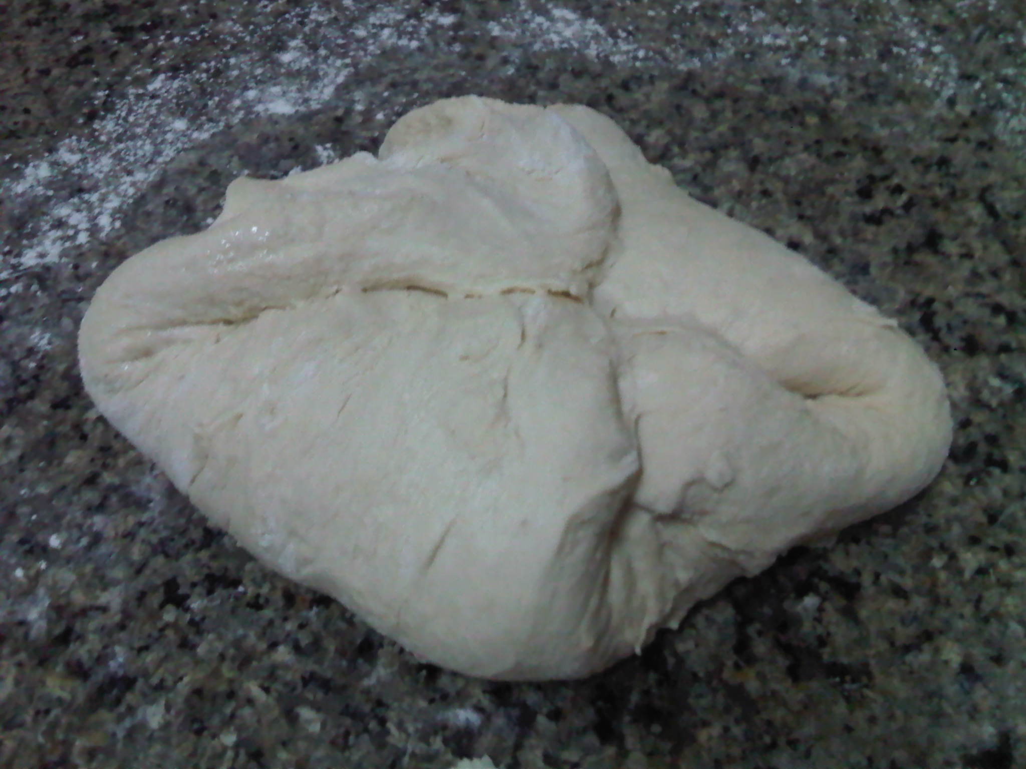 نحطها علي سطح مرشوش دقيق خفيف ونلمها من جميع الجهات ونسيبها تستريح واحنا قلبينها مكان التطبيقات لتحت