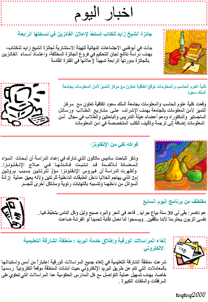 اهلين ياقلبي وفدى اسالتك حبيبتي اسالي على راحتك الي ابغاه انك تختاري اربع منشورات طيب؟؟ وتفتحي صفحه بيضاء تمام؟؟ كل منشور في اشكال وزخارف صح؟؟ ابغاك تاخذي من كل منشور من المنشورات الاربع كم حاجه تضيفيها على تصميمك في الصفحه البيضاء زي هذا هذا تصميم انا صممته مو قالب لكن باستخدام منشورات ثانيه تمام ياقلبوا؟؟ عارفه خخخخخ دام احنا في ساعة الاعترافات انا في البدايه انفجعت منكم كلكم صراحه كنت ادخل اكتب واقيم وانا عيوني كذا :32: كلكم مشرفه عامه مساعده مشرفه الحاسب مساعد مشرفه ياااااويلي واقول رح احطه كله صح كله صح بعدين اقول حرام يعنوا هم جاين يتعلموا مو يضيعوا وقتهم خخخخخ بس الحين عادي بالعكس احسكم خواتي مرررررررره واخذت عليكم والي ما تجاوب صح رح اديها على راسها خخخخخ هلا قلبوا افتحي اربع منشورات اوقفي على اول منشور برنت سكرين ولصقي اوقفي على ثاني منشور برنت سكرين ولصقي ثالث منشور برنت سكرين ولصقي رابع منشور برنت سكرين ولصقي رصي الأربع صور جنب بعض واجمعيهم مع بعض كصوره وحده احفظيها وبكذا خلصت اول جزء ثاني جزء ياقمر افتحي صفحه بيضا واستخدمي الاشكال والزخارف في المنشورات الاربعه عشان تكوني منشور جديد تمام ياقمر؟؟ خلصتي؟؟ احفظيه كصوره بالتوفيق ياقلبياهلين ياقلبي وفدى اسالتك حبيبتي اسالي على راحتك الي ابغاه انك تختاري اربع منشورات طيب؟؟ ...