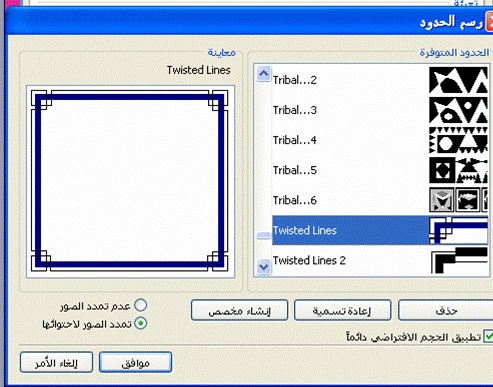 رابعا--تطلع هذي النافذه واختار الاطار وحجمه ولونه والمساحه الداخليه من القائمه العلويه صوره رقم 4