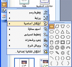 ثالثا--اختار من القائمه الجانبيه اي شكل انا اخترت مستطيل عشان اعمل اطار واسحبه وبعدين اختار من القائمه خطوط اضافيه