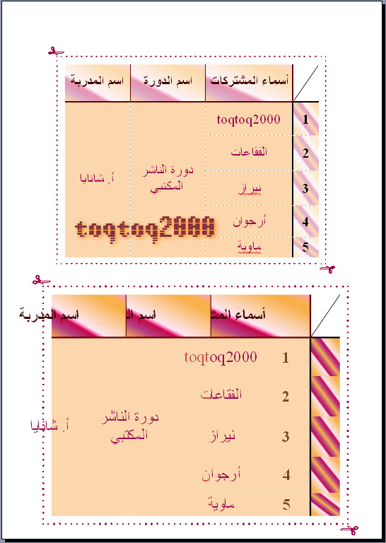 هذا جدول ثاني عملته على رواق بعد ماناموا الاولاد , انا عملت الاول عل السريع بس عشان اكون الاولى :42: