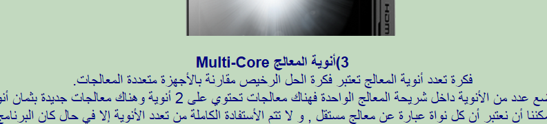 عندما ذكرت انوية المعالج Multi-Core وتعني انه متعدد الانوية يعني المعالج فيه أكثر من نواة والنواة الوحدة تعادل معالج وذلك لتسريع عمليات التنفيذ وبالتالي قوة وكفاءة للجهازالذكي