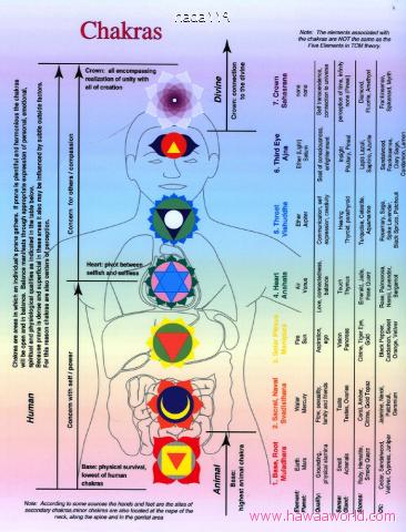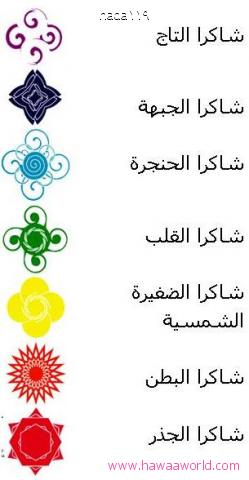 4- شيكرةالقلب .ومكانها القلب. لونها فسفوري .. وتختص بالعلاقات العاطفية للانسان .