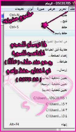 لما توصلو للحجم المناسب للصورة روحو عند ملف ( File )..