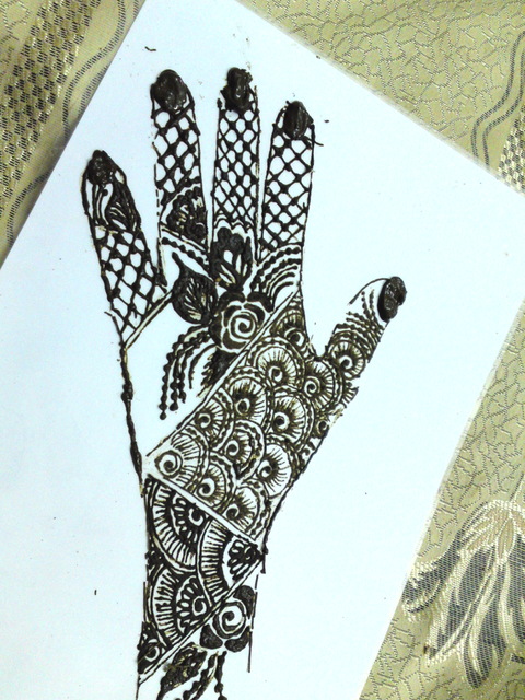 اول الغيث قطرة هذي اول تطبيقاتي المتاخرة والله يعيني على الباقي بصراحة المعصار غلبني يقطع معي ومن الدفاشة اللي فيني مسكت الورقة بقوة عشان اصورها الا والحنا الناشف تقشر وتفتت حاولت اعدل شوي بس يالله خيرها في غيرها