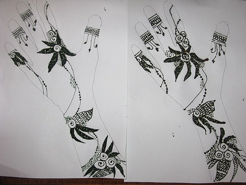 عاد قمت وعجنت الحنة وصراحة استخدمت حنة سيئة مالها لون عشان اذا جات على جسمي او ملابسي ماتعلم والمهم اني اول شئ اتقن الرسم بعدين استخدم حنة جيدة وجاء وقت عمل المغصار والله لايوريكم ماوراني مابغى يستوي بعد اكثر من نص ساعة محاولات ومنكثر فرحتى صورته لكم
