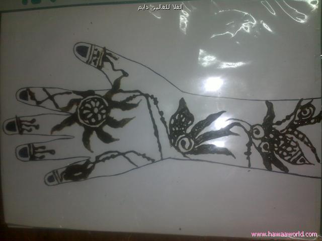 بمااني عزمت امري وتوكلت على الله وقررت البارحة اني اشارك فعليا في هذي الدورة الي ماتوقعت يوم من الايام اني اشارك في دورة مثلها لاني ماعمري فكرت امسك معصار واحني نفسي او بناتي على الرغم اني من بيئة من اهم عاداتها خاصة في عيد رمضان النقش وماهو اي نقش وتلقوننا من نصف رمضان واحنا نتصل ونحجز نقاشات حتى لو تطلب 1000 ريال يمكن مانقول لا .... المهم اني انقش ايديا ورجولي وبنوتاتي ينقشوا يداتهم الصغنونه