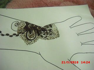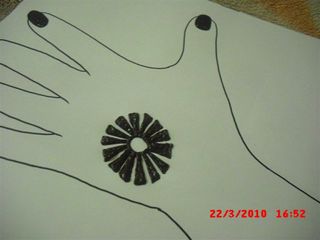 نرسم عند حد الظفر خطين وحلزونة ونرد نسوي وردة