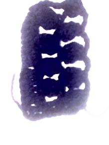 ولكن في اخر غرزه من الجهه الاولى تعملي 3 غرز بنفس المكان حتى تاخذ شكل الدوران الى الجهه الاخرى... مثل ماهو واضح بالباترون