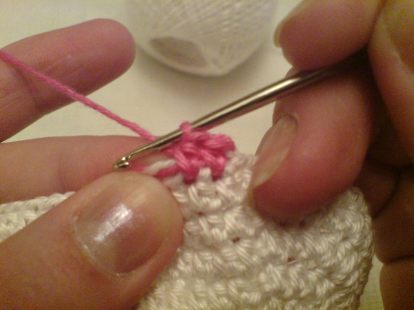 السطر الثامن : ارتفاع 4س وفي كل غرزه نعمل 4 س ثم حشو ونكرر حتى تعطينا غرزة البيكو