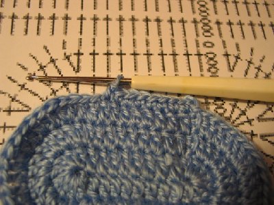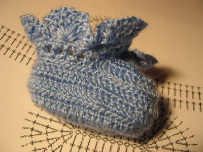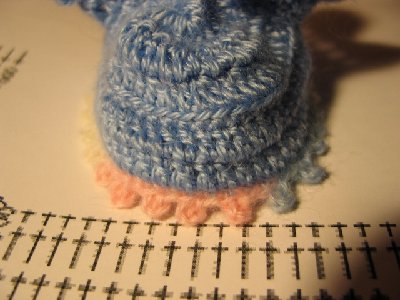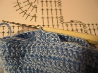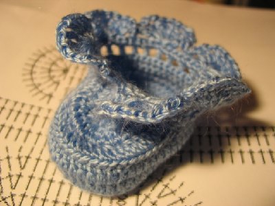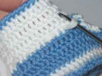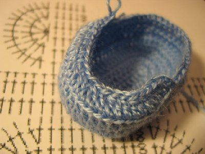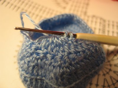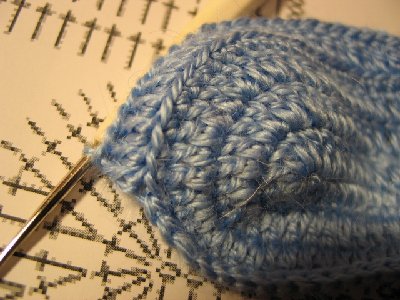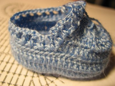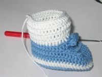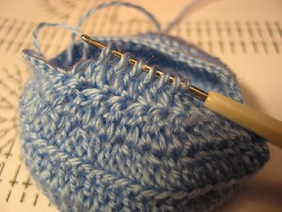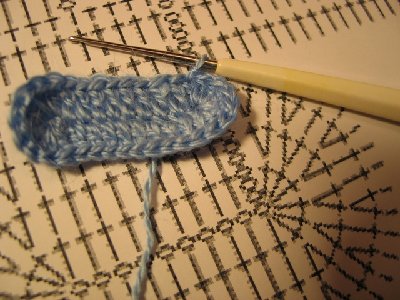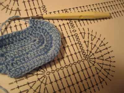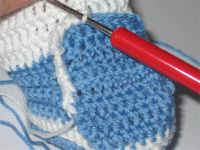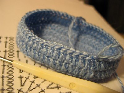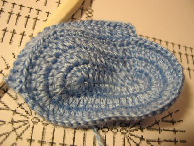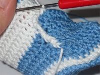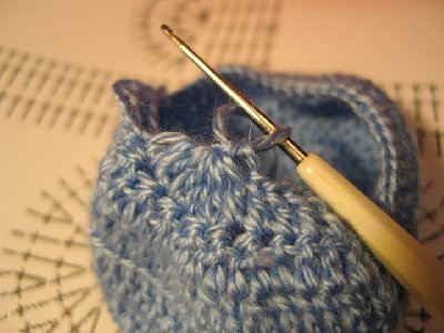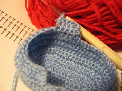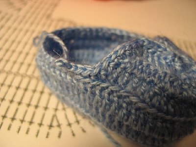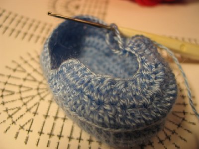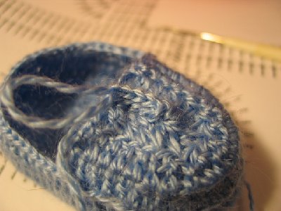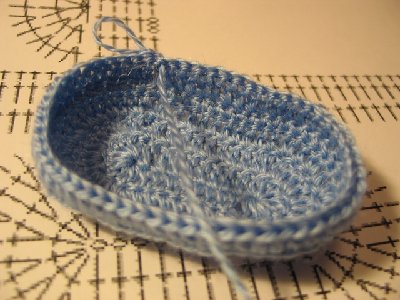اختمي بعد سطرين ارتفاع وابدئي بخيط جديد لمقدمة الحذاء