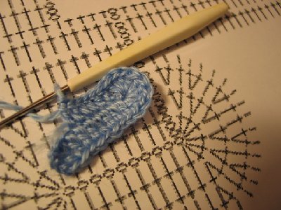 دانتيل من غرزة المروحة...( كل غرزتين الثالثة مروحة من 9 عمود)
