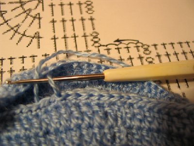 بعد سطر من غرز العمود كما في الصورة السابقة ...سطر رجعة من غرز الحشو