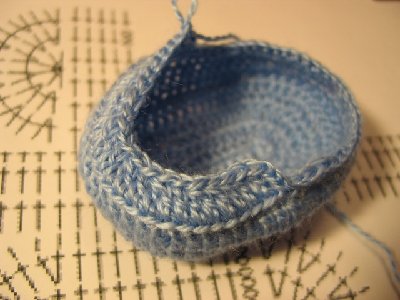 سطر رجعة من غرز الحشو...تلاحظي اطراف المقدمة تنحني لان الغاسطر بنفس العدد من الغرز