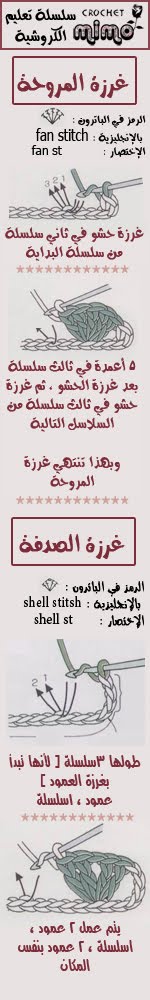 - أمّا هذا الرّمز فهو غرزة صدفة تتكوّنن من ( ثلاث غرز عمود ، 2 سلسلة ، 3 غرز عمود ) في نفس الفَراغ.