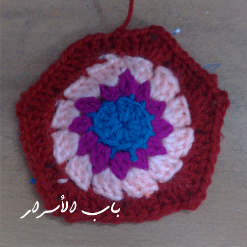 سلسلة وجيبي الوحدة السداسية اللي سويتيها قبل ... واشبكي شغلك فيها بمنزلقة في الزاوية وكملي في نفس