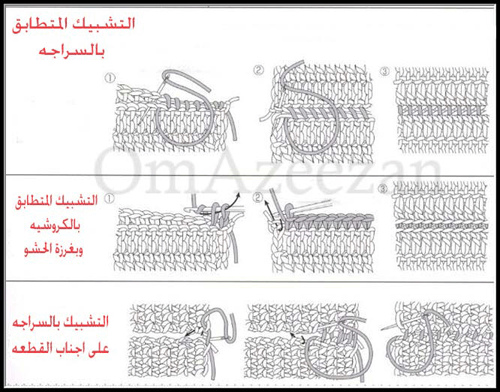 ومثل ما شفنا يختلف شكل التشبيك ايضا .... وعلى حسب القطعه او الباترون المراد شبكها