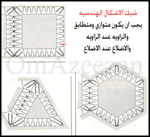 وفي تشبيك تجميلي زخرفي يجمل القطعه اكثر اثناء تشبيكها وايضا يعطيها مساحه بحيث تبدو القطعه اكبر حجما