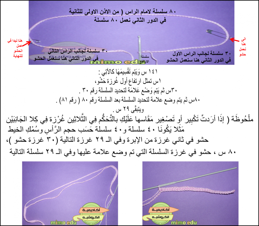 او ممكن ناخد ربطة شعر و نلصقها عليها بتكون جميل جدا و اذا حسيتوها كبيرة تقدروا تقللوا عدد سلاسل البداية و عدد الاسطر