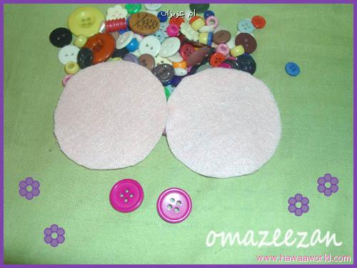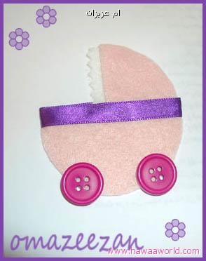 ونقص الدائره ثلاث ارباعها للعربه .... والدائره الثانيه نقصها بالوسط ثم نقص النصف الى ربع وناخذ الربع لغطى العربه ... ناخذ من القصاصات قطعه ونقصها بالمقص المشرشر وممكن نضع قطعت دانتيل .... ونجهز ازرارين مناسبين للعربه.... والشرائط والتزين كل وحده وذوقها ...