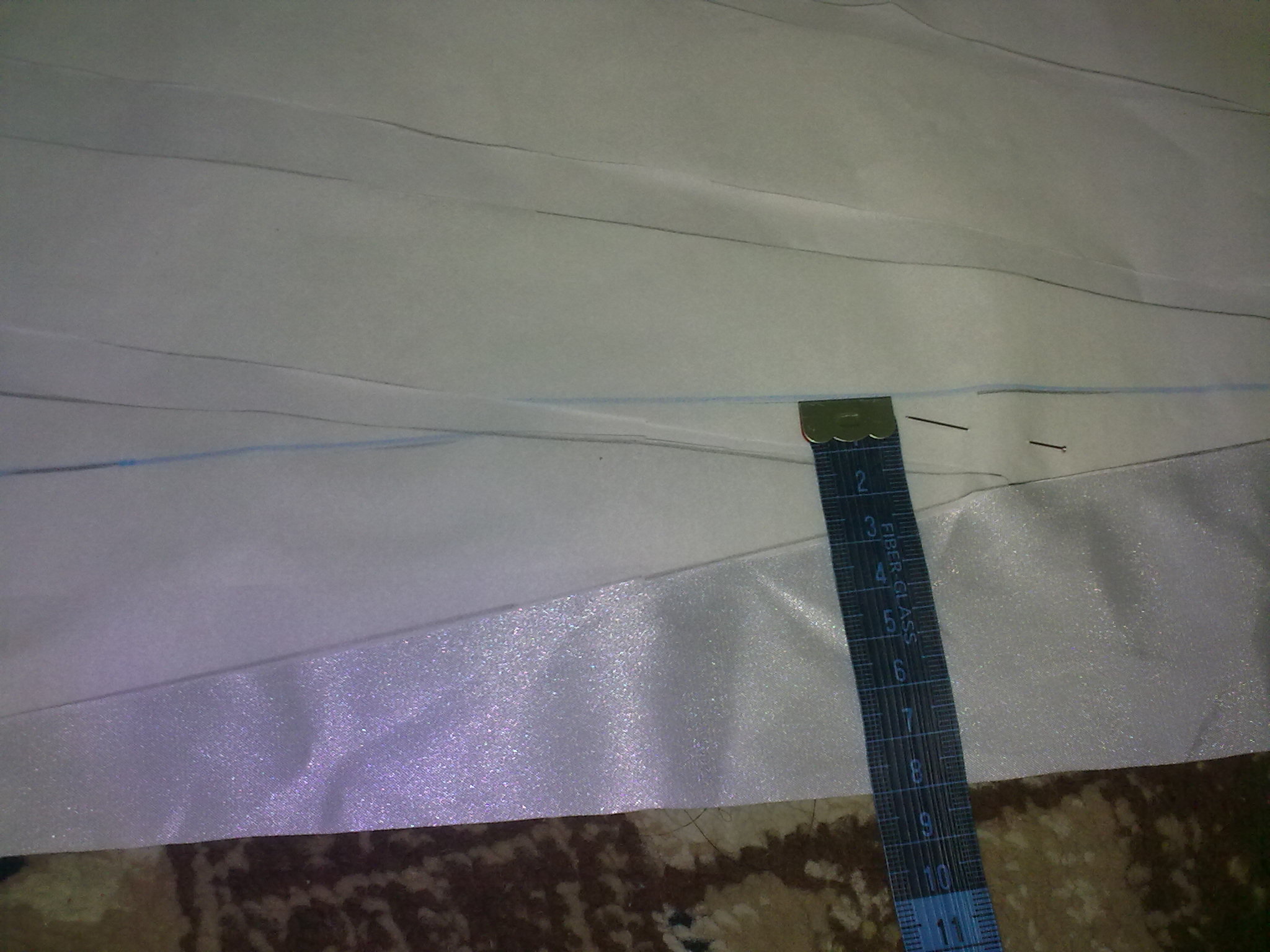هنا حطيتها على القماش وقست القماشمع الخط الي قلتي عليه يااستاذة