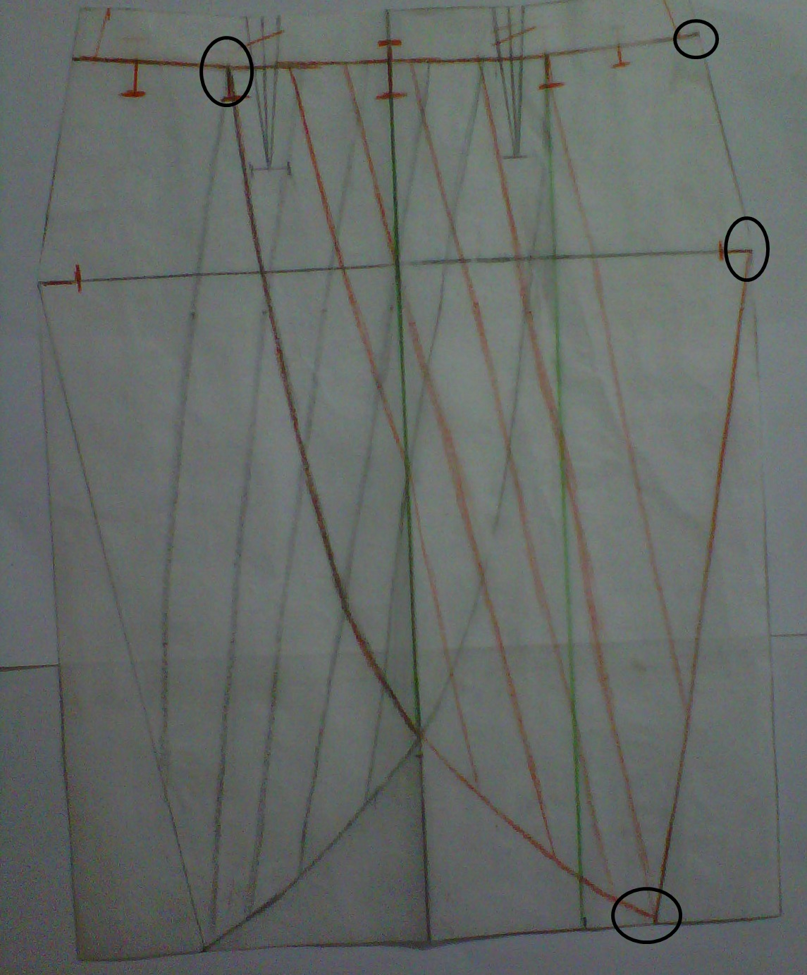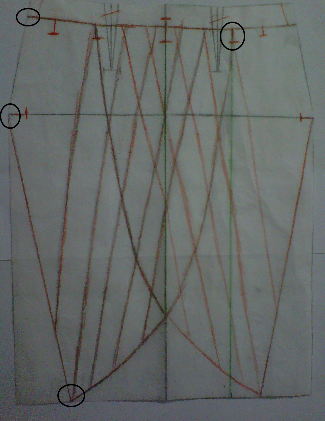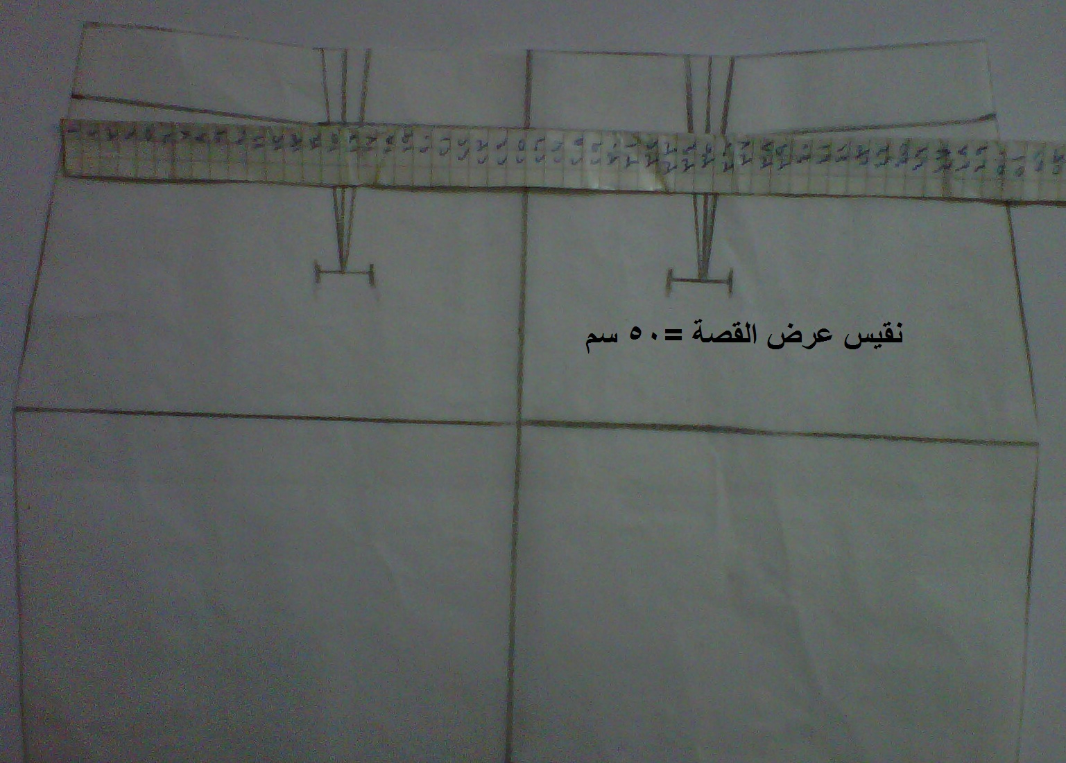 ننزل من خط الوسط 4سم ومن اول عامود للبنسة 4سم ومن خط نصف الخلف 4سم ونرسم القصة