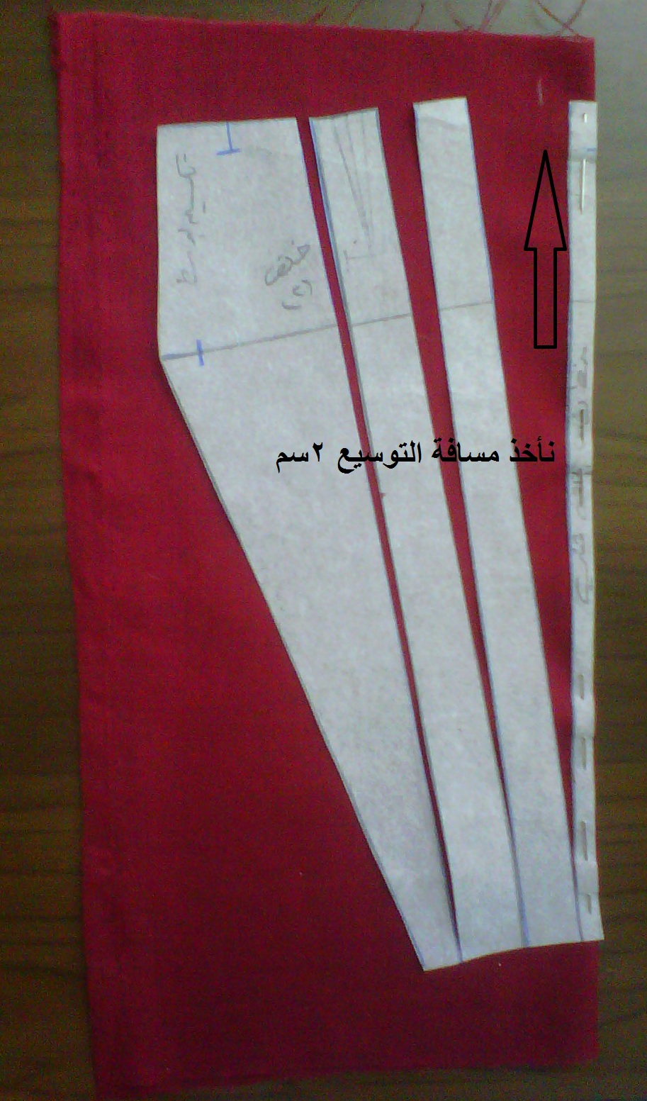 نشف الباترون كل طبقة لحالها ثم نعمل توسيع مسافة 2سم بين التوسيع أن احببتو تقدرون مسافه الزيادة للزم ( نحسب عدد الخطوط مثلا عددها هنا 5 خطوط