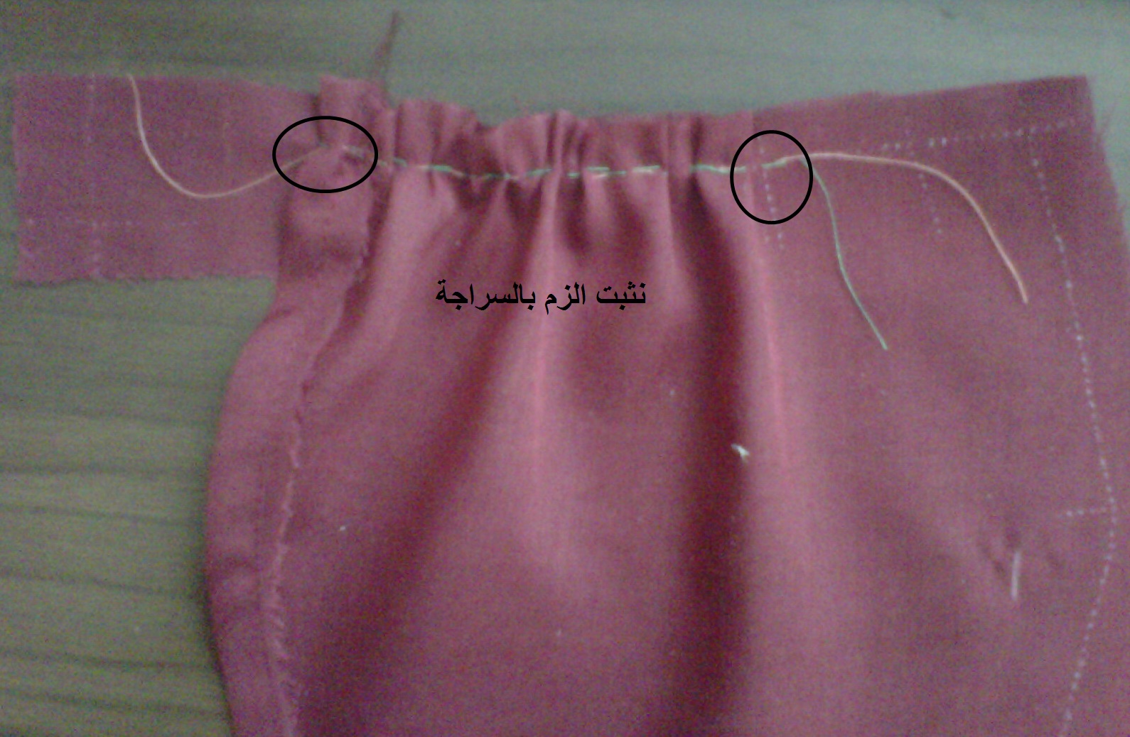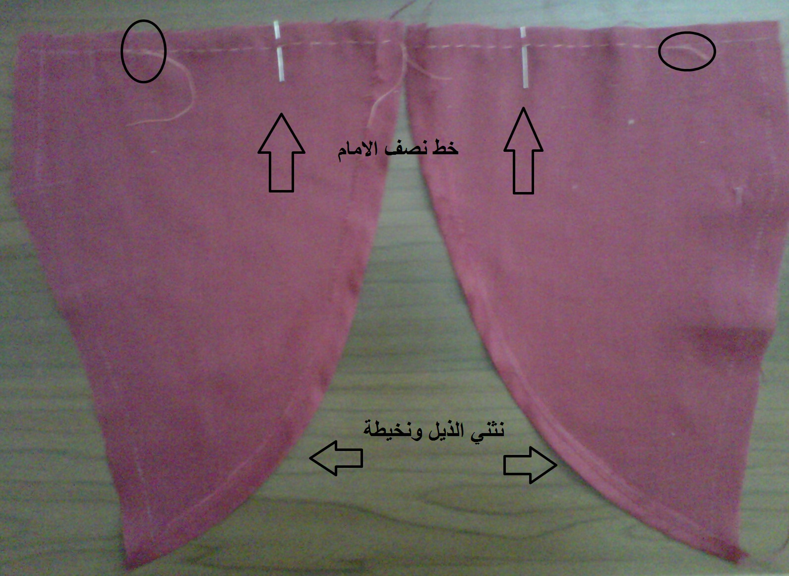 نبدا اولا بخياطة خط الميلان نسرفل الميلان على مسافه 3سم ثم نثني ونخيط او ممكن نعمل بطانه كاملة أذا كان القماش ناعم او خفيف وهو افضل وانظف بالخياطة